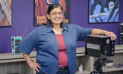 Electrical and computer engineering professor Jayshri Sabarinathan and collaborators in Earth sciences, engineering, Western's Institute for Earth and Space Exploration and the Royal Ontario Museum were awarded a contract from the Canadian Space Agency to advance a made-in-Canada imaging instrument for potential use aboard the Canadian lunar utility rover.