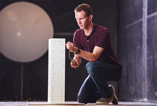 By building models and testing them inside Western’s Boundary Layer Wind Tunnel, Matthew’s research is focused on the effect of wind loads on mid-rise buildings.