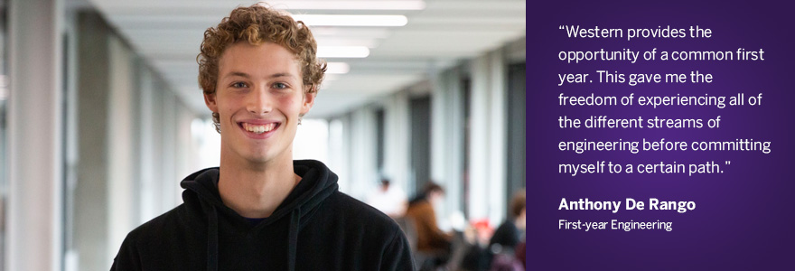 After deciding to pursue engineering as an undergraduate degree, I looked at many different universities and programs in order to find what would best suit my wants and needs. For many reasons, Western Engineering stood out as my top choice. First of all, Western provides engineering students the opportunity of having a common first year. This gave me the freedom of experiencing all of the different streams of engineering before committing myself to a certain path. Although I already had an idea about a few of the branches that I was interested in, the common first year kept my options open. It also allowed me to discover new interests in some of the first-year courses that I never would have taken had I gone straight into a specific stream.